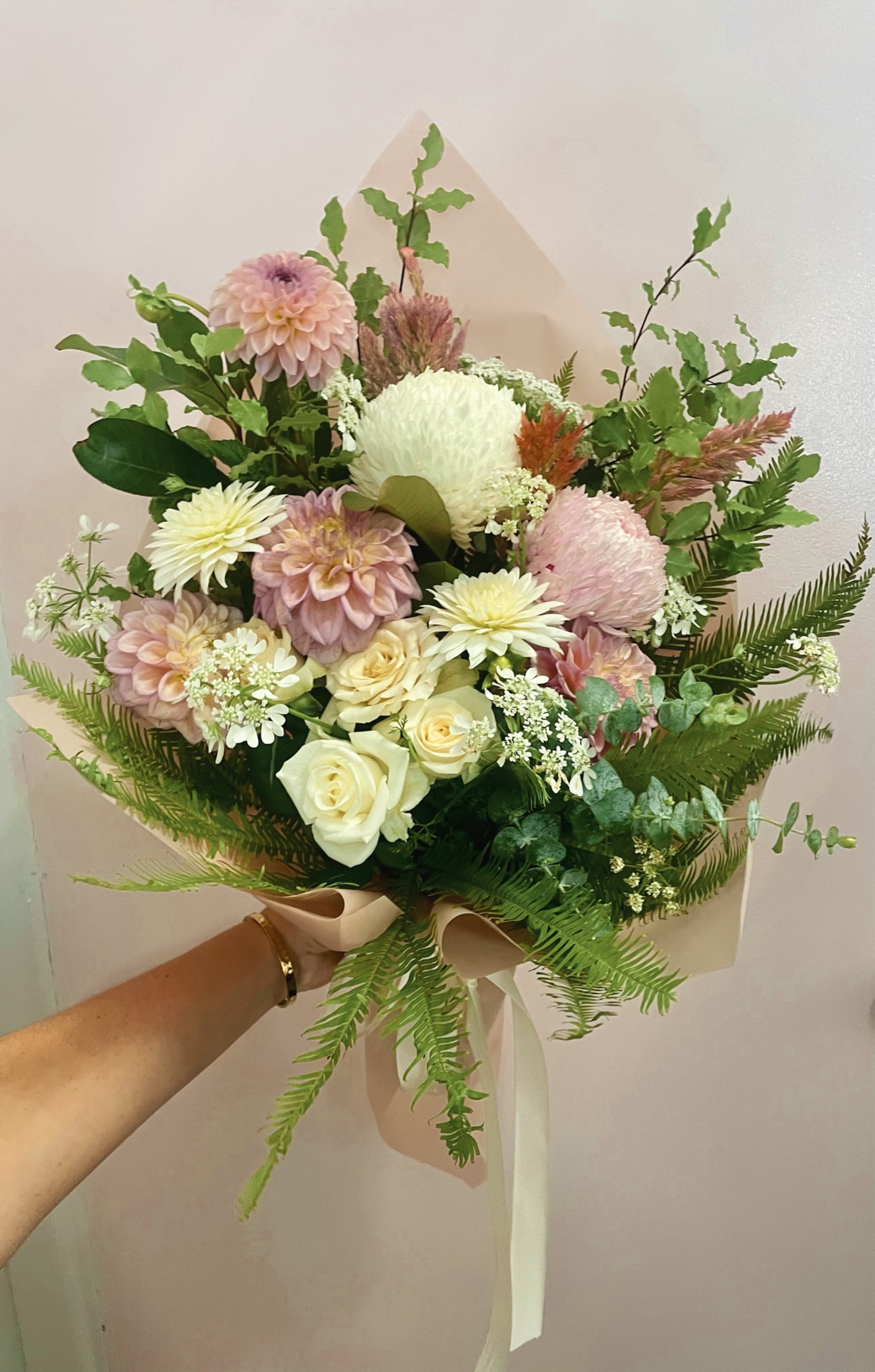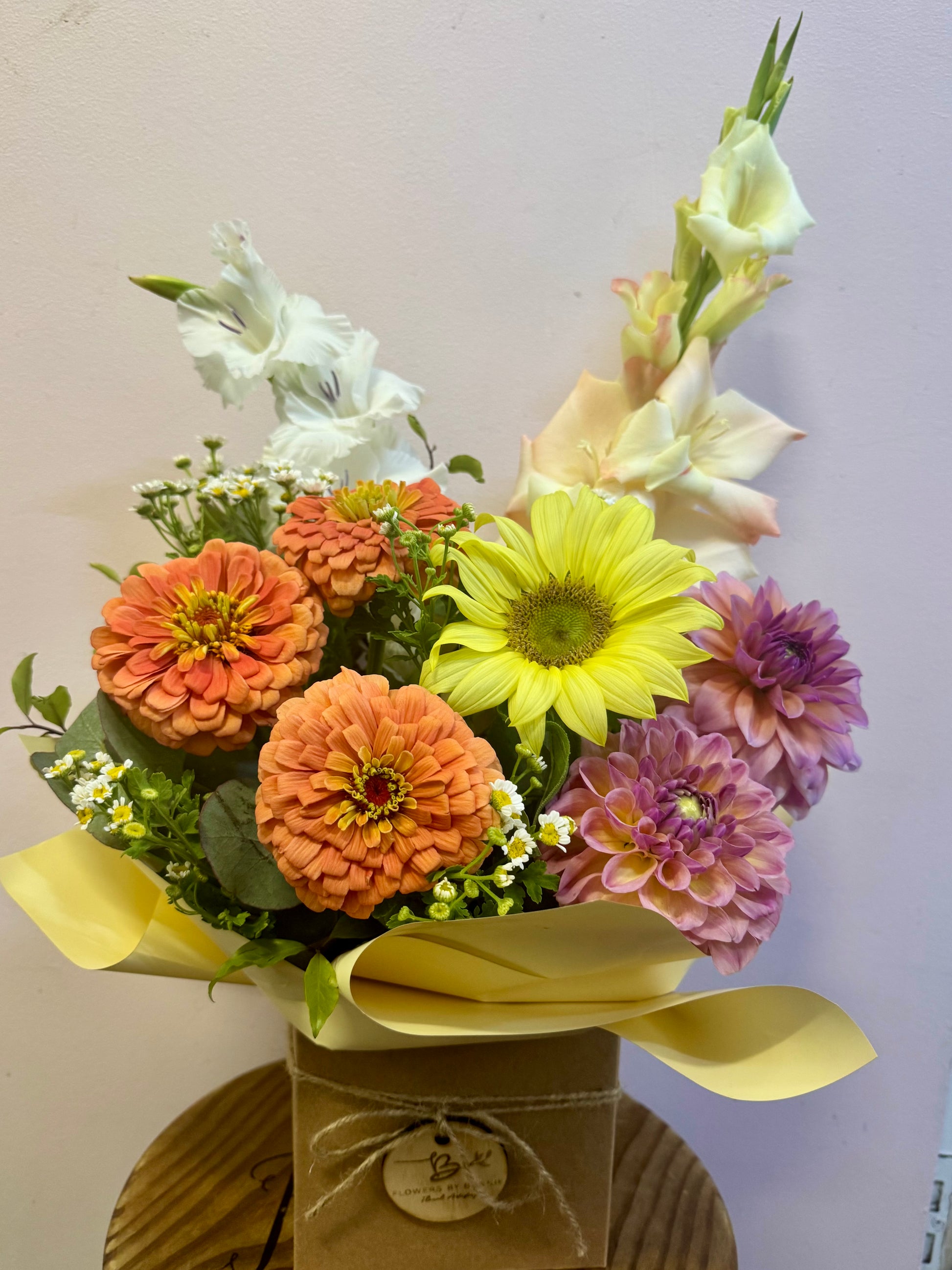 A stunning and generous seasonal arrangement of all locally grown blooms handcrafted by our skillful florists.