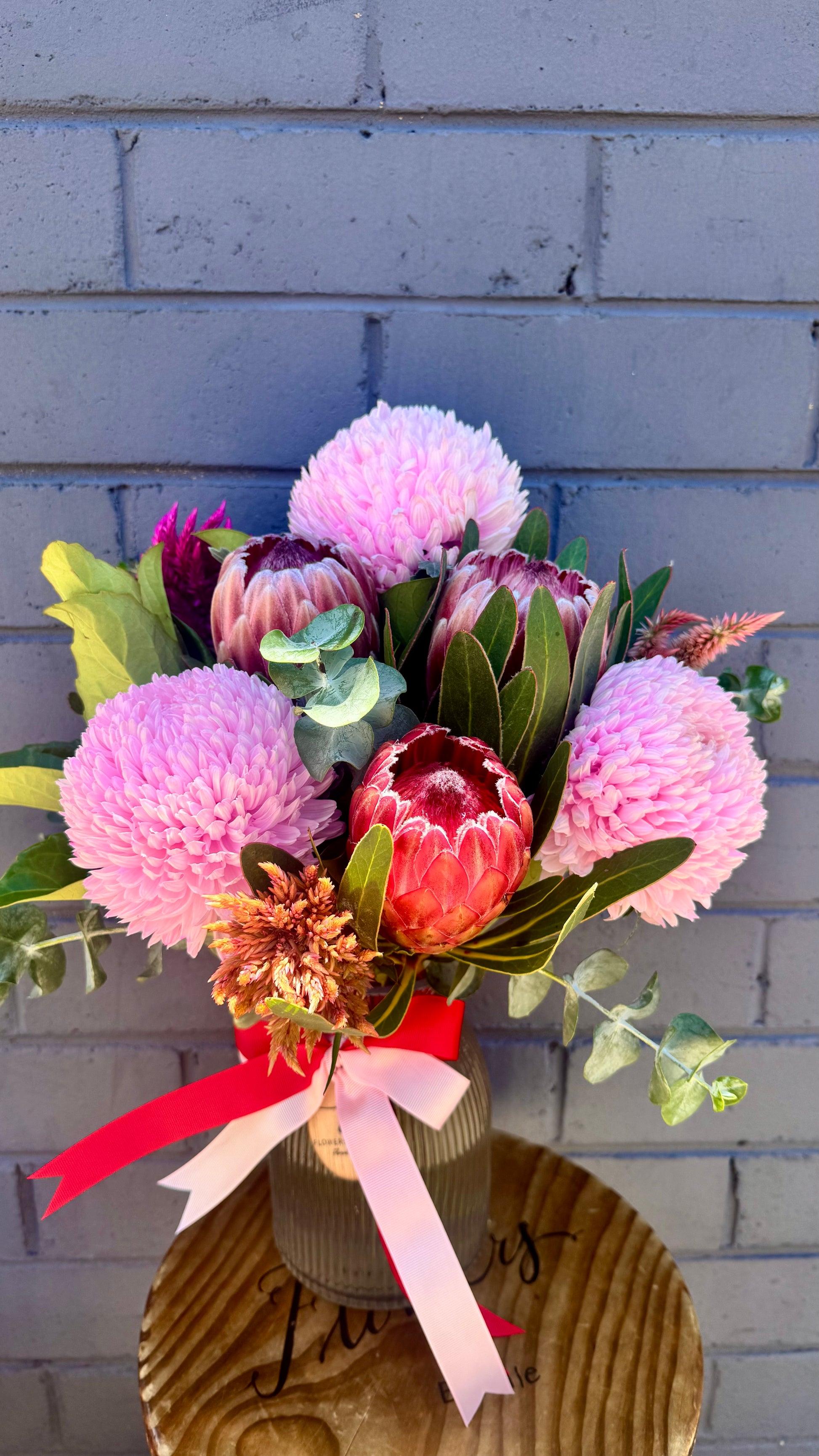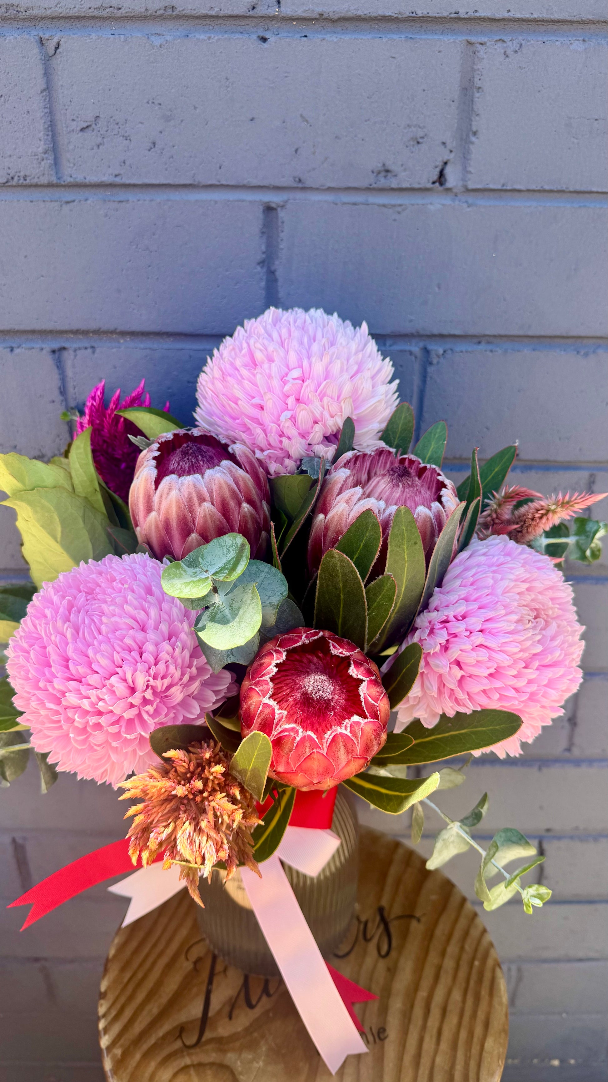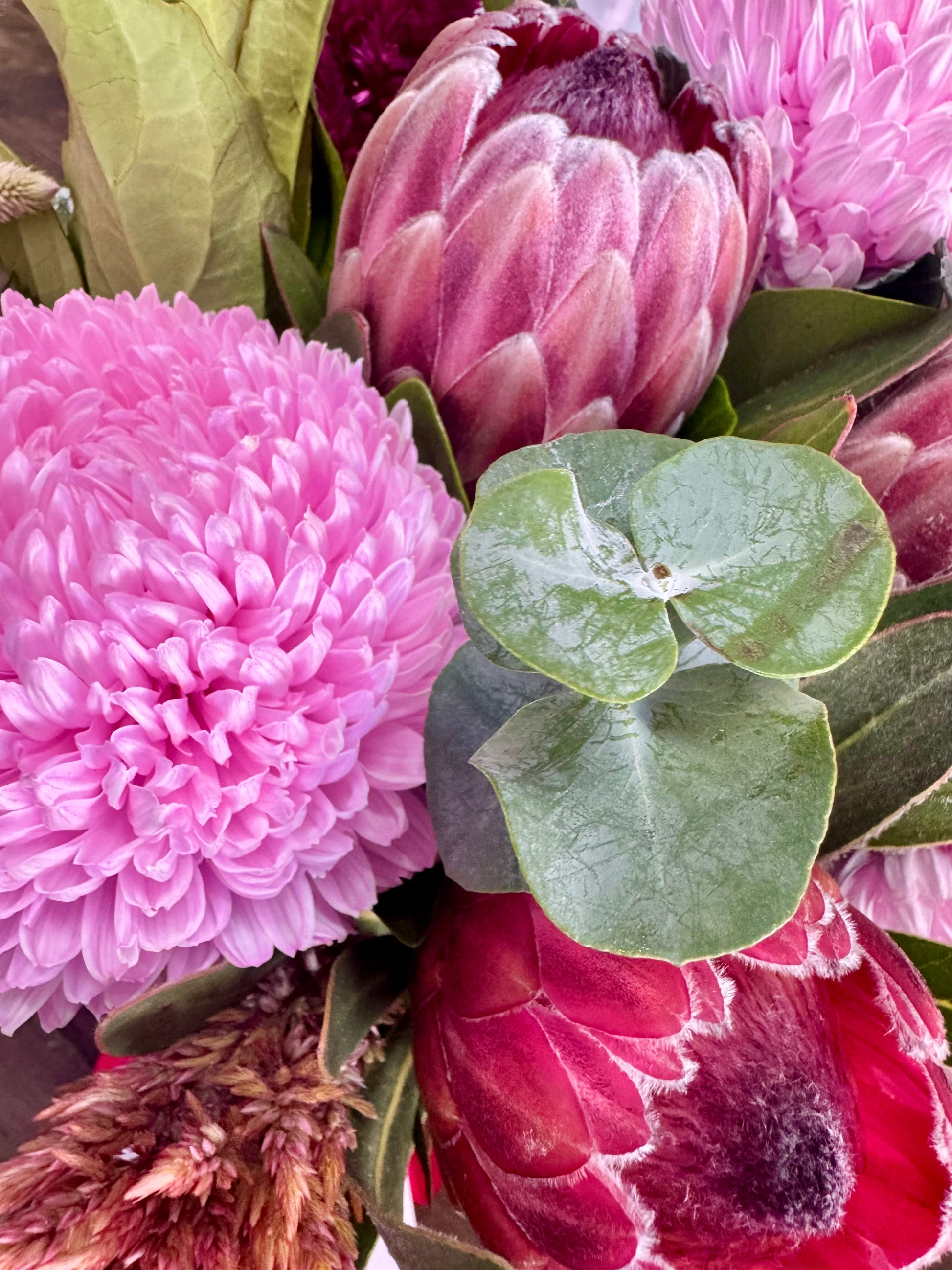 Experience a love that stands the test of time with Long Lasting blooms. This unique product offers a love that never fades, providing endless joy and happiness. Say goodbye to short-lived romances and hello to a love that truly lasts. Don't settle for anything less than Long Lasting Flowers and love. Native Protea's and Disbuds will dry naturally when left out of water.